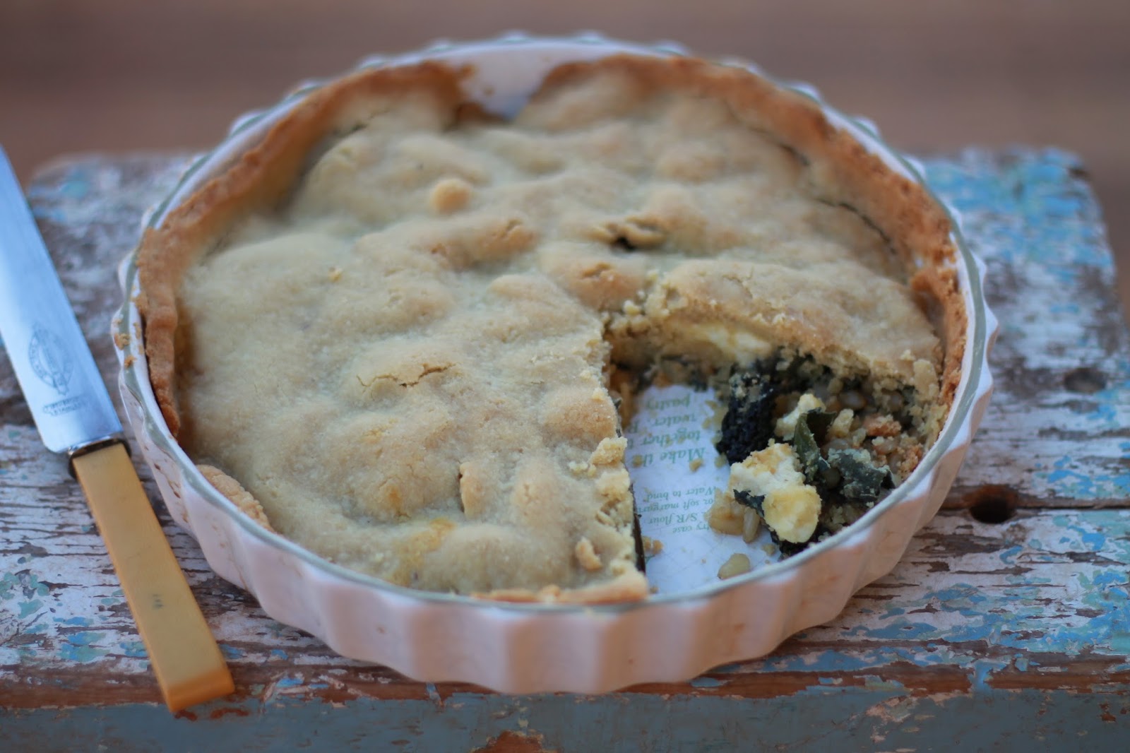 If you're trying to use up lots of greens, I've done a post on kale pesto (you could use beetroot leaves) and on Khachapuri (bread filled with greens and feta) The khachapuri are very portable and won't crumble like a crust would .