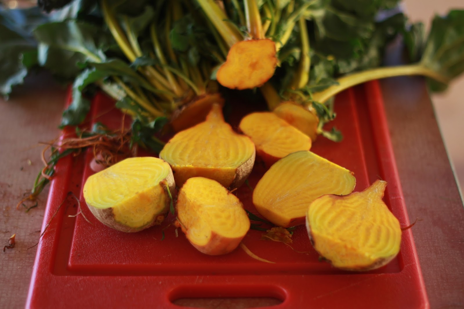 Much like grapefruit, beetroot and I have only just become friends.Β Β Since I have been growing Golden beetroot I have started to appreciate the colour and taste of this delicious underground vegetable.