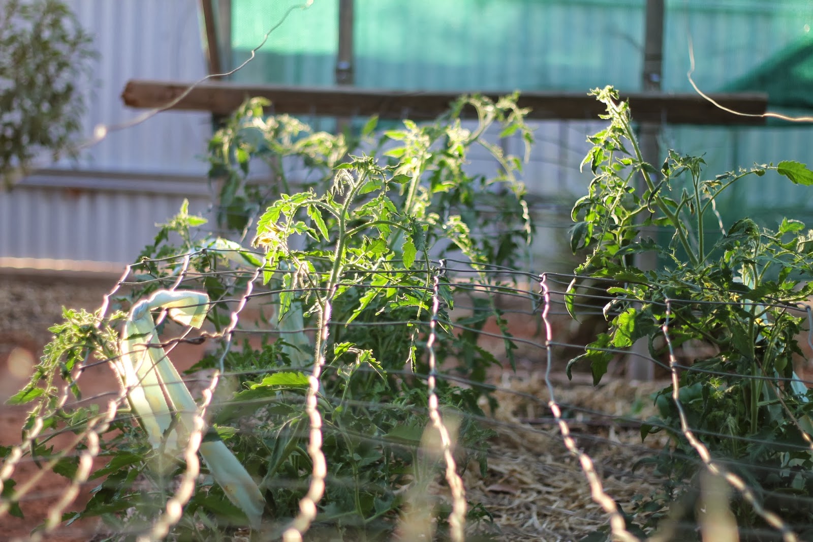 Each summer I make plans to devise a way of trellising and supporting my tomato plants that is neat, functional and attractive. Somehow I always seem to end up with a jumble of wire, posts, netting, shade cloth, ties and even a few old steel beds from our shearer’s quarters. Luckily, productivity is not always linked to aesthetics.