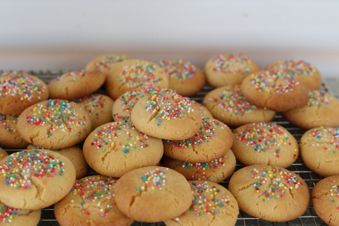 Basic, four ingredient biscuits coated generously with pretty sprinkles. Sprinkles just make everything better don’t they?