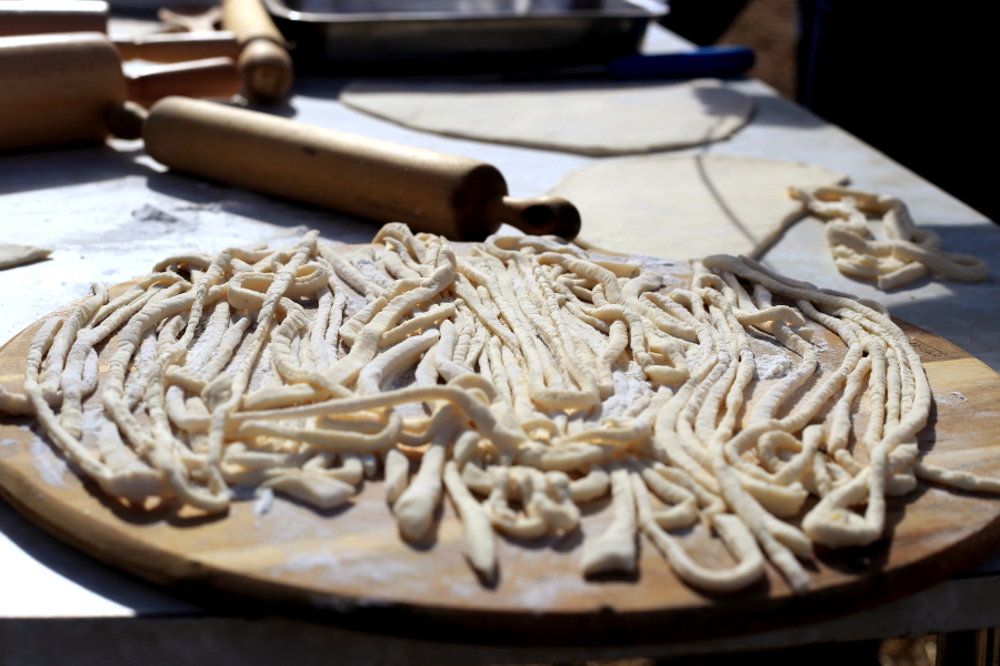Every year as we all take on more commitments we could quietly end this day and put the memories into the archives. However, standing around a table making pastries, pasta and bread with friends is something very special. It gives us all a reason to stop and talk and listen and observe. It makes us all step away from our everyday lives and sit down together to share lunch on a table that my husband built specifically for this day. The swap table gives everyone a chance to unleash some creativity, depending on individual strengths and interests.